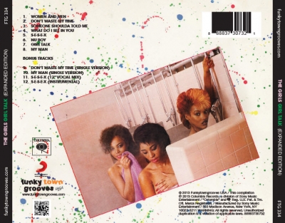 FunkyTownGrooves’ expanded CD edition of Girl Talk contains the eight tracks that appeared on the original 1984 LP as well as four bonus tracks, which include the single versions of “S-E-S-E-X,” “Don’t Waste My Time” and “My Man” along with an instrumental version of “S-E-S-E-X.”