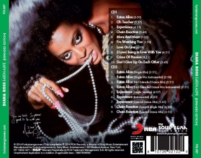 Originally released as a 10-song vinyl LP back in 1985, Eaten Alive is now a deluxe two-CD set thanks to FunkyTownGrooves (which, in 2014, is reissuing all six of the albums that Ross recorded for RCA during the 1980s—not only Eaten Alive, but also, 1981’s Why Do Fools Fall in Love, 1982’s Silk Electric, 1983’s Ross, 1984’s Swept Away and 1987’s Red Hot Rhythm & Blues). Disc One contains the original 1985 LP in its entirety, while Disc Two is devoted exclusively to bonus material and offers four mixes of the title track (including an instrumental version and an extended dance version), two mixes of “Chain Reaction” and three versions of “Experience” (one of them instrumental).