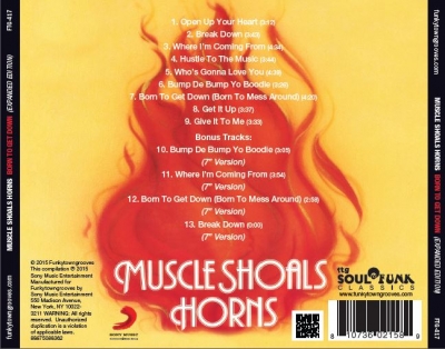 After Born to Get Down, the Muscle Shoals Horns recorded two more LPs on their own: Doin’ It to the Bone (released by Ariola Records in 1977) and Shine On (released by Monument Records in 1983). Now, in 2015, FunkytownGrooves is reissuing all three albums on CD.